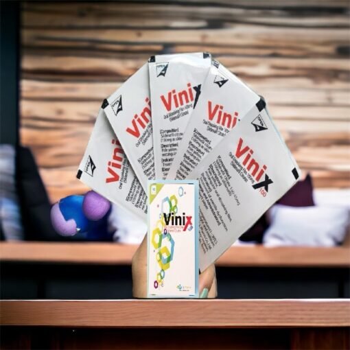 Hiện tại, sản phẩm có hai loại hàm lượng là tem Vinix 100mg và tem vinix 50mg được bào chế ở dạng miếng tem (giống kẹo cao su) được bao bọc bởi giấy bạc. Mỗi hộp Vinix được bao gói gồm 10 miếng tem ngậm tiện lợi cho sử dụng.